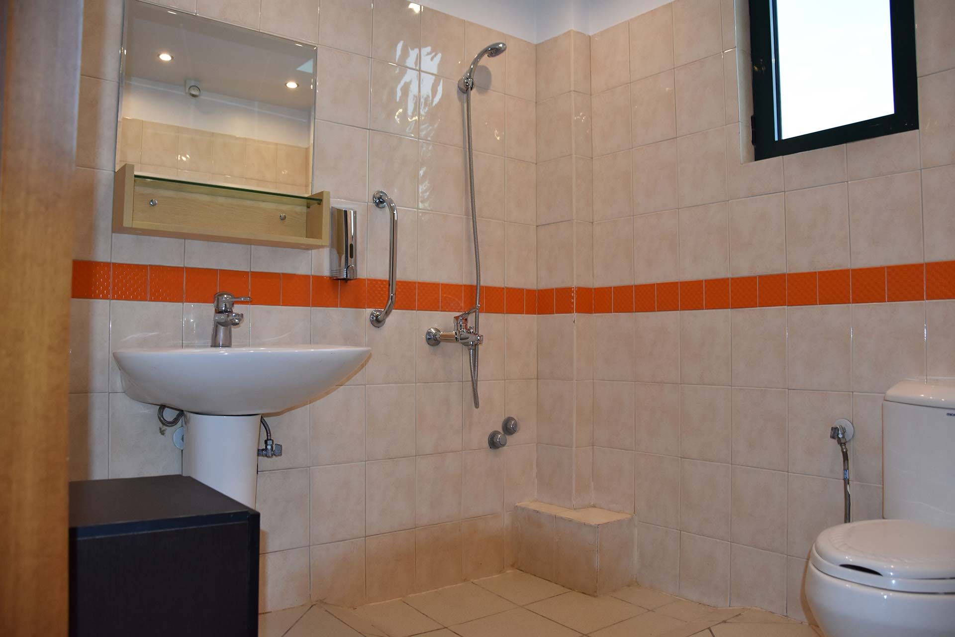 Όλα τα μπάνια της Μονάδας Φροντίδας Ηλικιωμένων είναι εξοπλισμένα και κατάλληλα διαμορφωμένα για να καλύπτουν τις ανάγκες ατόμων τις τρίτης ηλικίας και ατόμων με κινητικά προβλήματα.