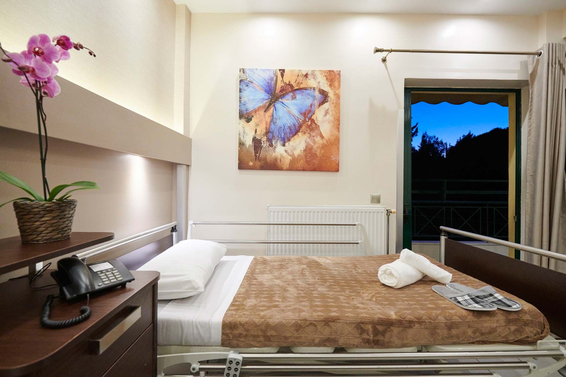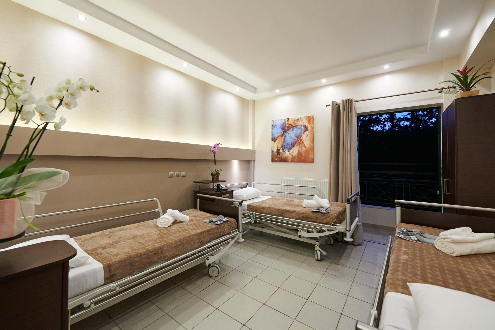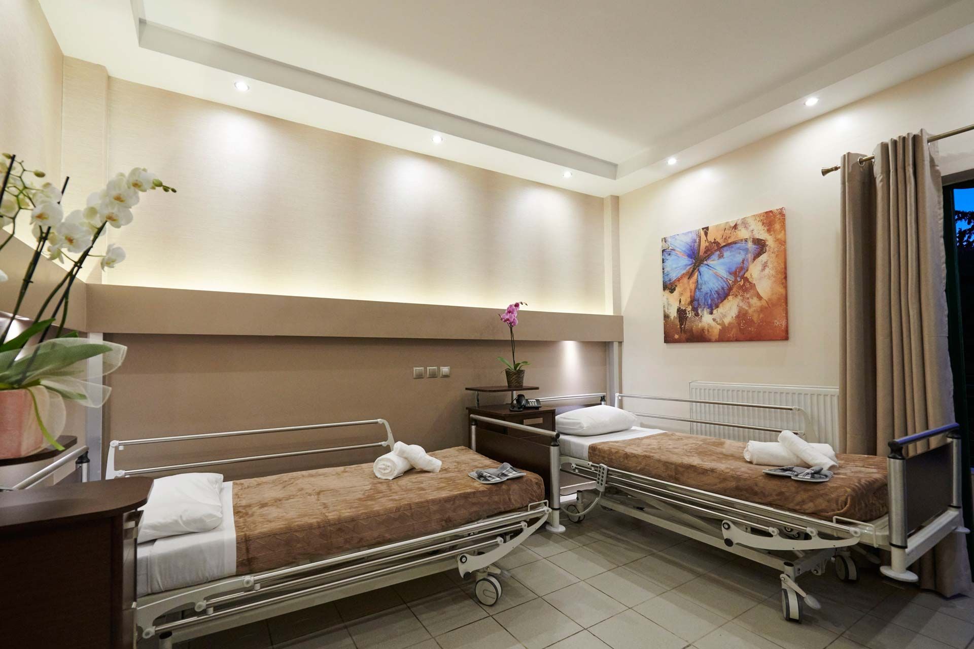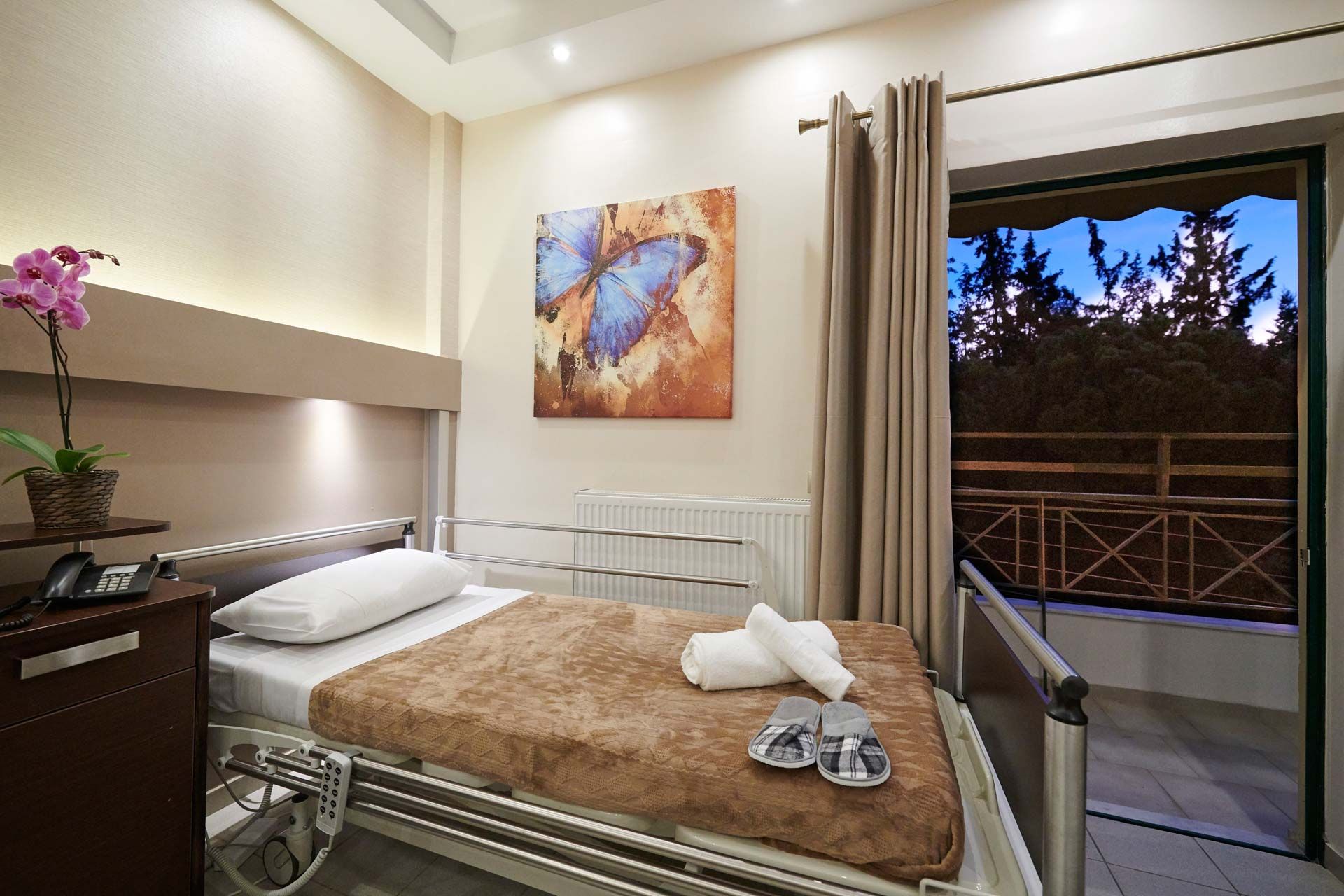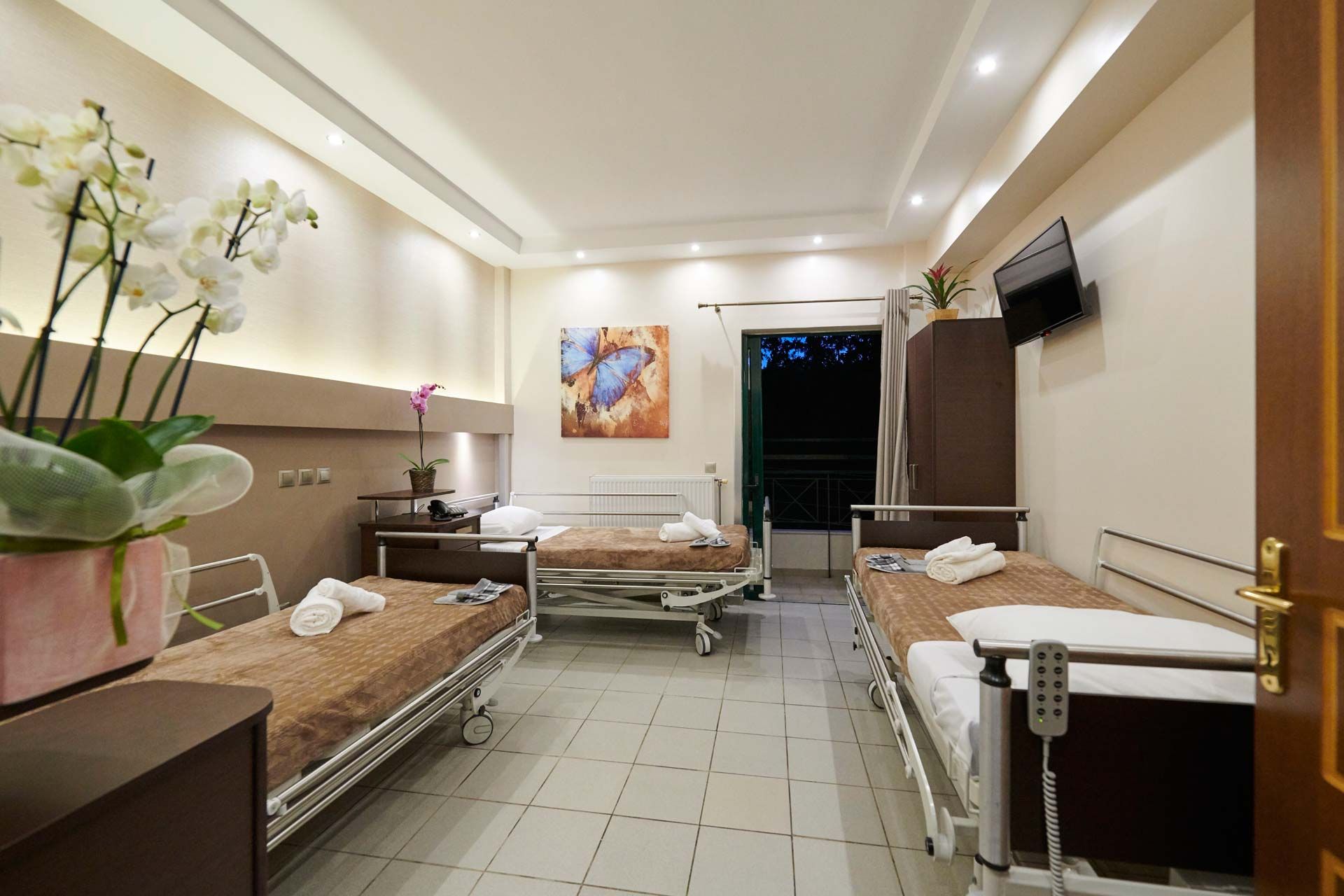 Άνετα υπνοδωμάτια, με φυσικό φωτισμό και θέα προσφέρουν στους φιλοξενουμένους μια ευχάριστη καθημερινότητα. Διαθέτουν μοντέρνα επίπλωση όπως και τον κατάλληλο, σύγχρονο εξοπλισμό υποστήριξης των αναγκών της Τρίτης ηλικίας. Δίνεται η δυνατότητα επιλογής σε δωμάτια μονόκλινα, 2κλινα, 3κλινα, και 4κλινα.